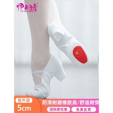 白色高跟舞蹈鞋女成人軟底帶跟教師專用練功跳舞鞋形體古典舞新款
