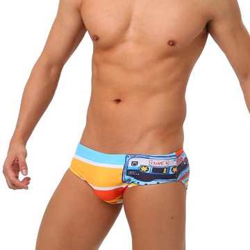 點我下載男士系繩復古磁帶條紋印花三角褲游泳褲顯大防走光防水性感褲衩夏