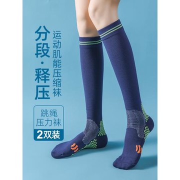 壓力襪跳繩跑步專用壓縮襪女健身瑜伽瘦腿小腿襪肌能運動中筒襪子