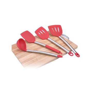 OTTO LIFE 矽膠廚具 BQ-180 耐溫-40°C~230°C 湯勺 + 沙拉勺 + 漏鏟 紅色 1組