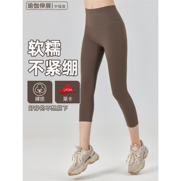 外貿出口歐美無尺碼高腰提臀收腹運動健身跑步瑜伽緊身裸感七分褲