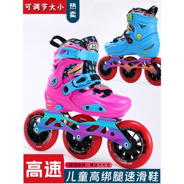 美高新款競速大三輪輪滑鞋兒童青少年男女孩可調速滑訓練休閑刷街