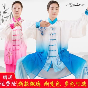 龍拳兒童成人武術服太極拳長拳男女漸變色8色太極服紅綠黃紫藍色