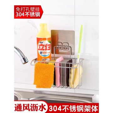 廚房清潔收納架304不銹鋼壁掛免打孔水槽旁墻上瀝水籃碗布置物架