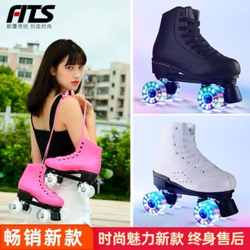 旱冰鞋雙排四輪溜冰鞋成年男輪滑鞋4個輪子滑冰鞋閃光溜冰場專用
