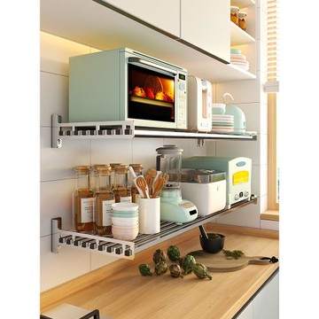 304不銹鋼廚房微波爐置物架壁掛式鍋架收納電器雜物儲物烤箱架子