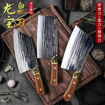 龍泉菜刀家用切菜刀套裝錳鋼鍛打廚師專用切肉切片刀砍骨刀具廚房