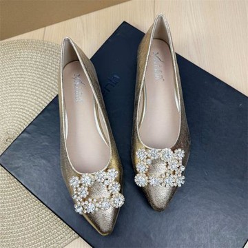 秋季2025新款舒適軟底鞋時尚女鞋氣質韓版水鉆淺口尖頭平底單鞋女