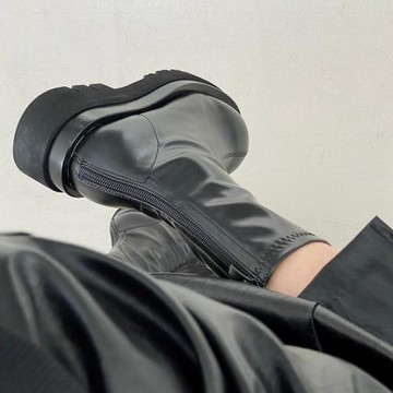 (34.39最後一雙)《漫步巴黎》小方頭襪靴 皮革黑 GB-49LB