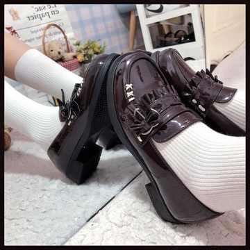 轉校生 甜心密探 原創日系學院風JK制服鞋圓頭低跟蝴蝶結小皮鞋女