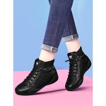 加絨黑色高幫鞋女2026新款中年媽媽鞋春季女鞋軟底跑步女士運動鞋