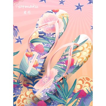 點我下載hotmarzz黑瑪夏季新款人字拖鞋女防滑涂鴉小狗休閑逛街夾腳沙灘鞋