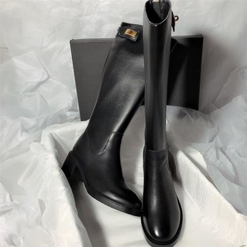 森嶼海巷 2025新款真皮中跟不過膝長靴騎士機車簡約百搭高筒靴女
