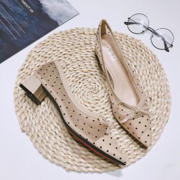 包頭涼鞋女粗跟2025春季新款波點網紗溫柔仙女風尖頭低跟單鞋大碼