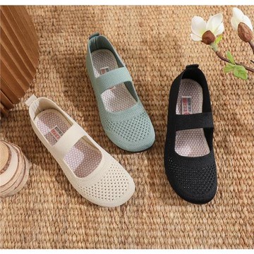 女鞋春夏單鞋軟底防滑透氣輕便休閑鞋百搭飛織面媽媽鞋