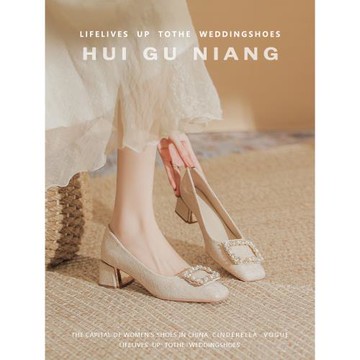 綢緞粗跟高跟單鞋伴娘鞋不累腳2025新款法式主婚紗婚鞋新娘鞋訂婚