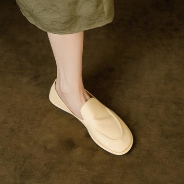 香港2025年柔軟百搭復古舒適圓頭真皮一腳蹬圓頭樂福鞋平底單鞋女