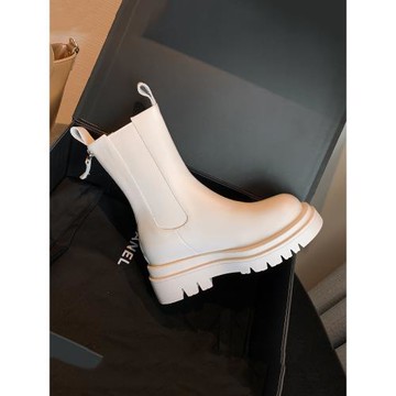 高定新款bv mona棕色馬丁靴厚底高筒靴切爾西靴男女同款高幫靴子