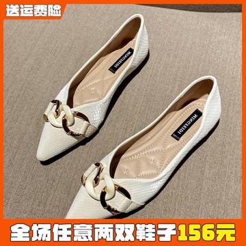 尖頭單鞋女2025夏季新款百搭平底晚晚風溫柔鞋仙女大碼女鞋41到43