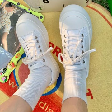 帆布鞋女日系風可愛厚底百搭丑萌大頭鞋ins潮復古圓頭低幫小白鞋