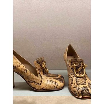 歐美新款金屬馬街扣蛇紋法式高跟鞋細跟復古方頭單鞋女氣質宴會鞋
