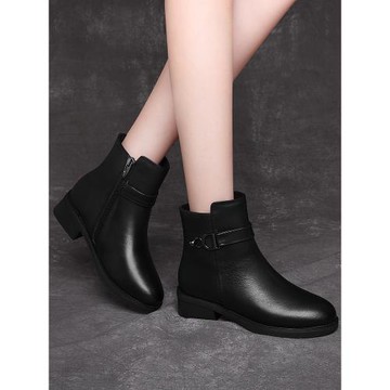 復古圓頭真皮帶扣馬丁靴女秋冬新款切爾西靴側拉鏈粗低跟及踝靴女