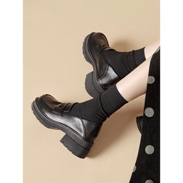 香港高跟厚底樂福鞋女單鞋松糕小皮鞋2026年春季新款學院風英倫鞋