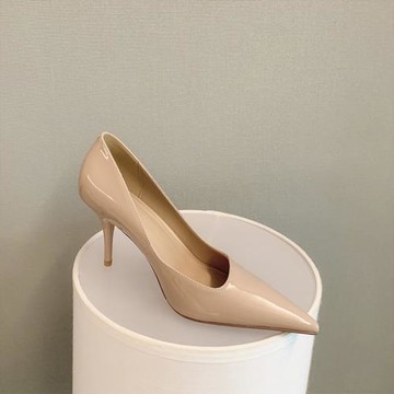 巨巨舒服!軟到爆~!ins韓國裸色漆皮尖頭細跟高跟鞋通勤仙女單鞋