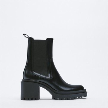 ZA2025冬季新款真皮8cm厚底切爾西靴女加絨煙筒靴馬丁靴粗跟短靴