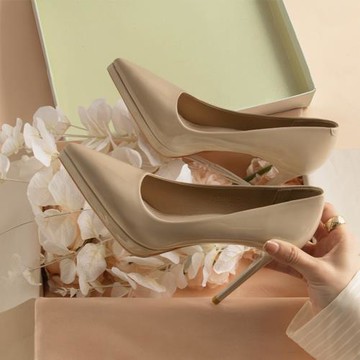 裸色高跟鞋女細跟2025年新款防水臺夜店米白色單鞋漆皮10cm春秋季
