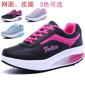 春秋夏季新款網面搖搖鞋運動跑步鞋女旅游鞋松糕厚底單鞋女韓版潮