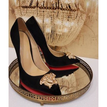 歐美2025新款超細高跟鞋12CM黑色經典款狐貍扣尖頭淺口大碼女單鞋