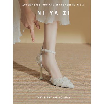 日常可穿香檳色婚鞋女新娘鞋秀禾2023年新款春秋尖頭高跟鞋女細跟