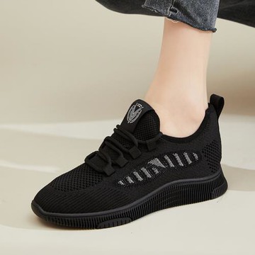 時尚單鞋女2025夏季新款飛織網面透氣休閑舒適外貿大碼厚平底運動