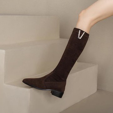 神級美腿V口麂皮長靴(一般/加大筒圍)