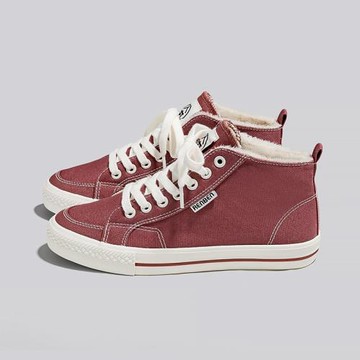人本加絨帆布鞋女2024秋冬季新款棉鞋加厚保暖冬鞋高幫二棉鞋板鞋
