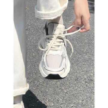 灰色老爹鞋女款2025新款厚底增高設計感小眾復古做舊超火運動鞋潮