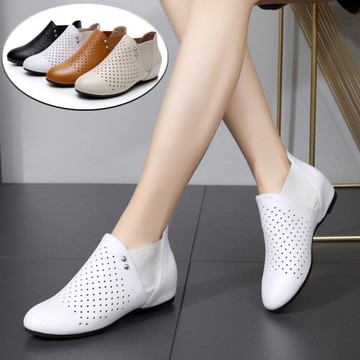 春秋女靴子真皮平底小短靴鏤空洞洞女鞋小碼3334及踝靴軟底媽媽鞋