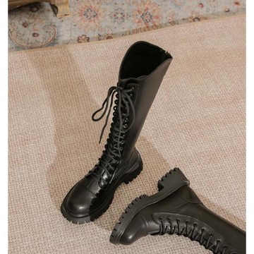 點我下載大叔家~長筒靴女系帶厚底英倫秋冬季新款小個子150顯瘦高筒騎士靴