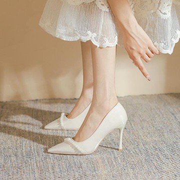 珍珠鍊尖頭細跟鞋