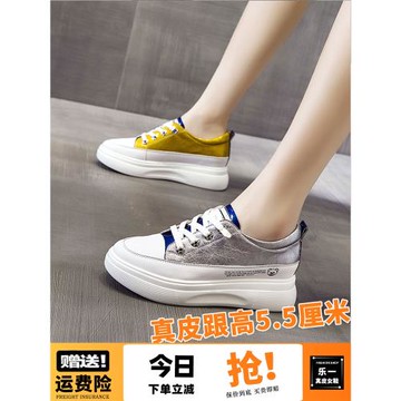真皮厚底休閑運動鞋2025新款春秋松糕學生鞋兩穿小個子增高女拖鞋