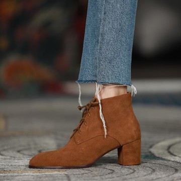 香港潮牌2025春秋復古絨面真皮短靴女韓版粗跟英倫時尚百搭高跟鞋