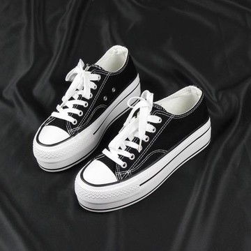 2020年春季松糕厚底學生帆布鞋女平底低幫休閑布鞋百搭新款板鞋潮