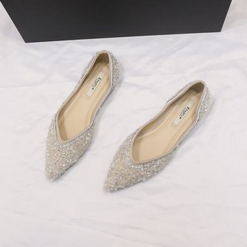 珍珠尖頭伴娘低跟水晶亮片婚鞋