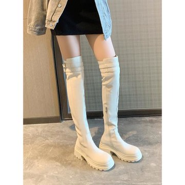 六點大叔顯瘦長靴女不過膝秋季新款厚底白色長筒靴高筒瘦瘦騎士靴