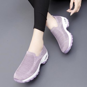 夏季女鞋厚底搖搖鞋輕便運動鞋透氣軟底媽媽鞋防滑網面休閑旅游鞋