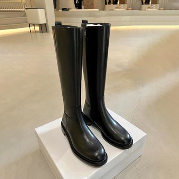 2024秋冬季新款歐美高靴女靴真皮直筒靴大碼長靴平底高筒靴騎士靴