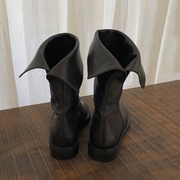 ANNSTAR 彭彭PON聯名-時髦腿精必備歐美皺摺靴6cm-黑(版型偏小)