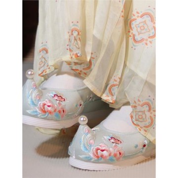 江南朱記漢服鞋【驚春羽】女古風繡花鞋漢服配鞋內增高布鞋平跟