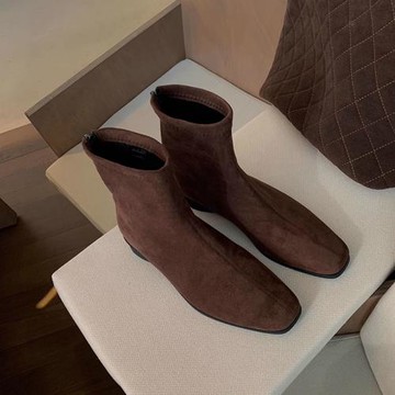 2025新款秋冬韓系復古方頭絨面瘦瘦靴百搭粗跟增高短筒靴女馬丁靴